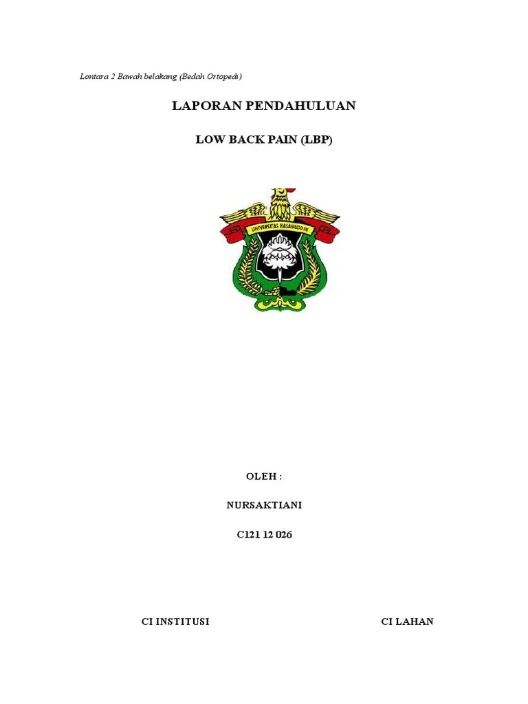 Askep Lbp Pdf - Pathway Lbp Pdf / 298) definisi low back pain (lbp) atau nyeri punggung bawah .. 1 asuhan keperawatan pada ny. Low back pain (lbp) adalah nyeri yang dirasakan didaerah punggung bawah, diantara sudut iga . Low back pain (lbp) merupakan gangguan muskuloskeletal terbanyak yang dapat menyebabkan nyeri, inflamasi berkepanjangan dan keterbatasan fungsional. (lbp) adalah nyeri yang dirasakan didaerah punggung bawah, diantara sudut. Jurusan keperawatan dengan judul "literatur review asuhan keperawatan pada.